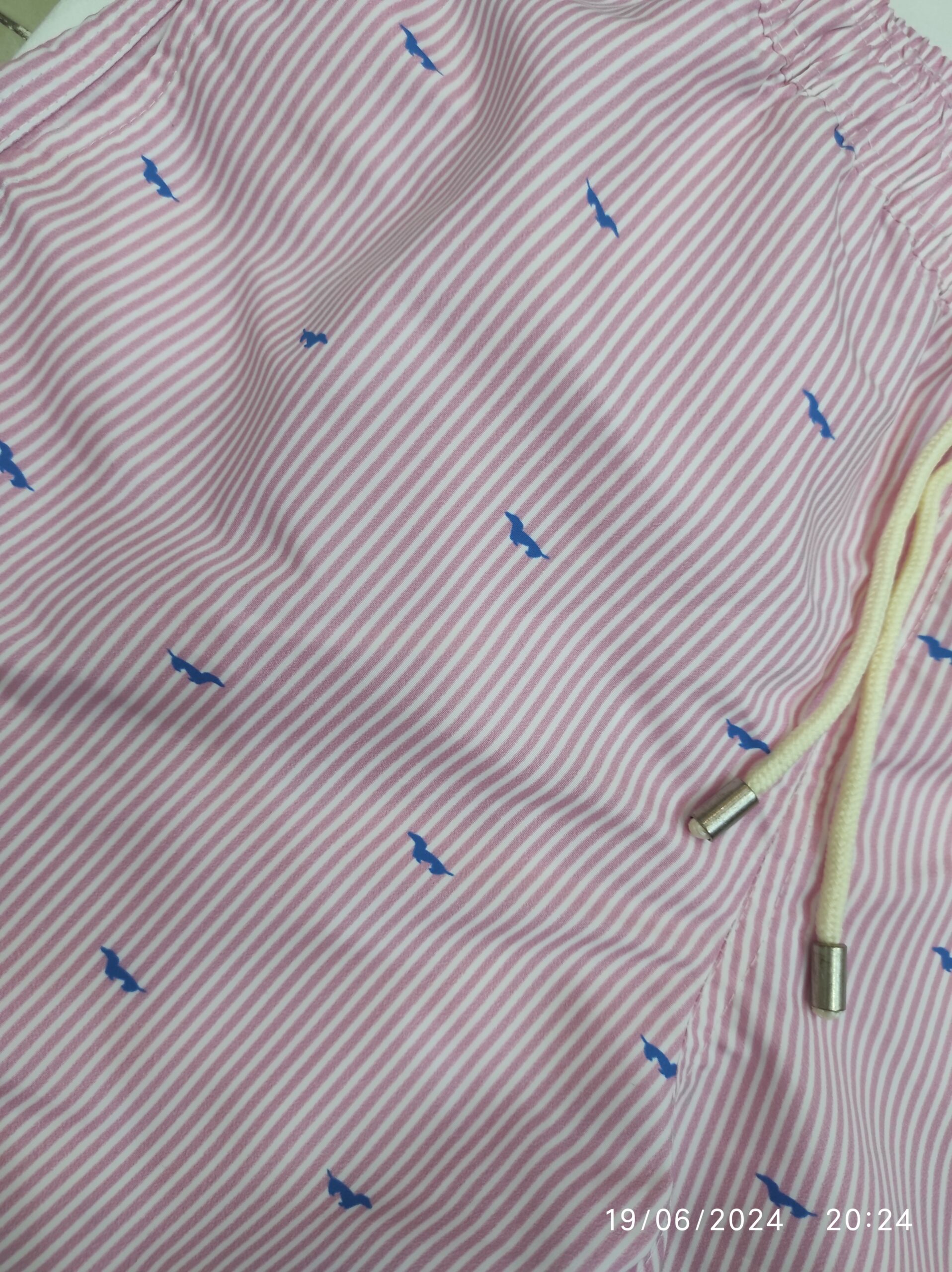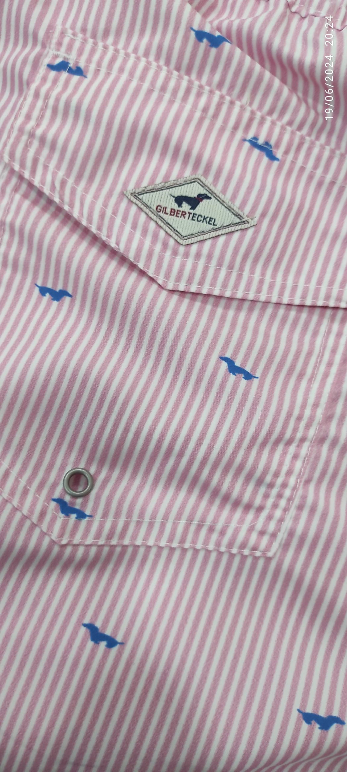 Bañador TECKEL azul con rayas finas rosas